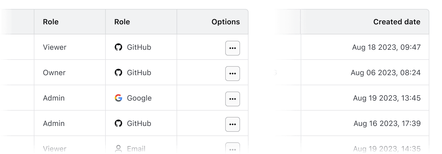 • In a column with a "more options" function.